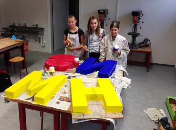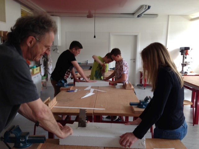 Im Rahmen des BE-Unterrichts wurden Ideen und Vorschläge diskutiert und letztendlich wurde der Entschluss gefasst, große Buchstaben aus Ytongsteinen zu gestalten und diese im neuen Eingangsbereich der Schule zu platzieren.