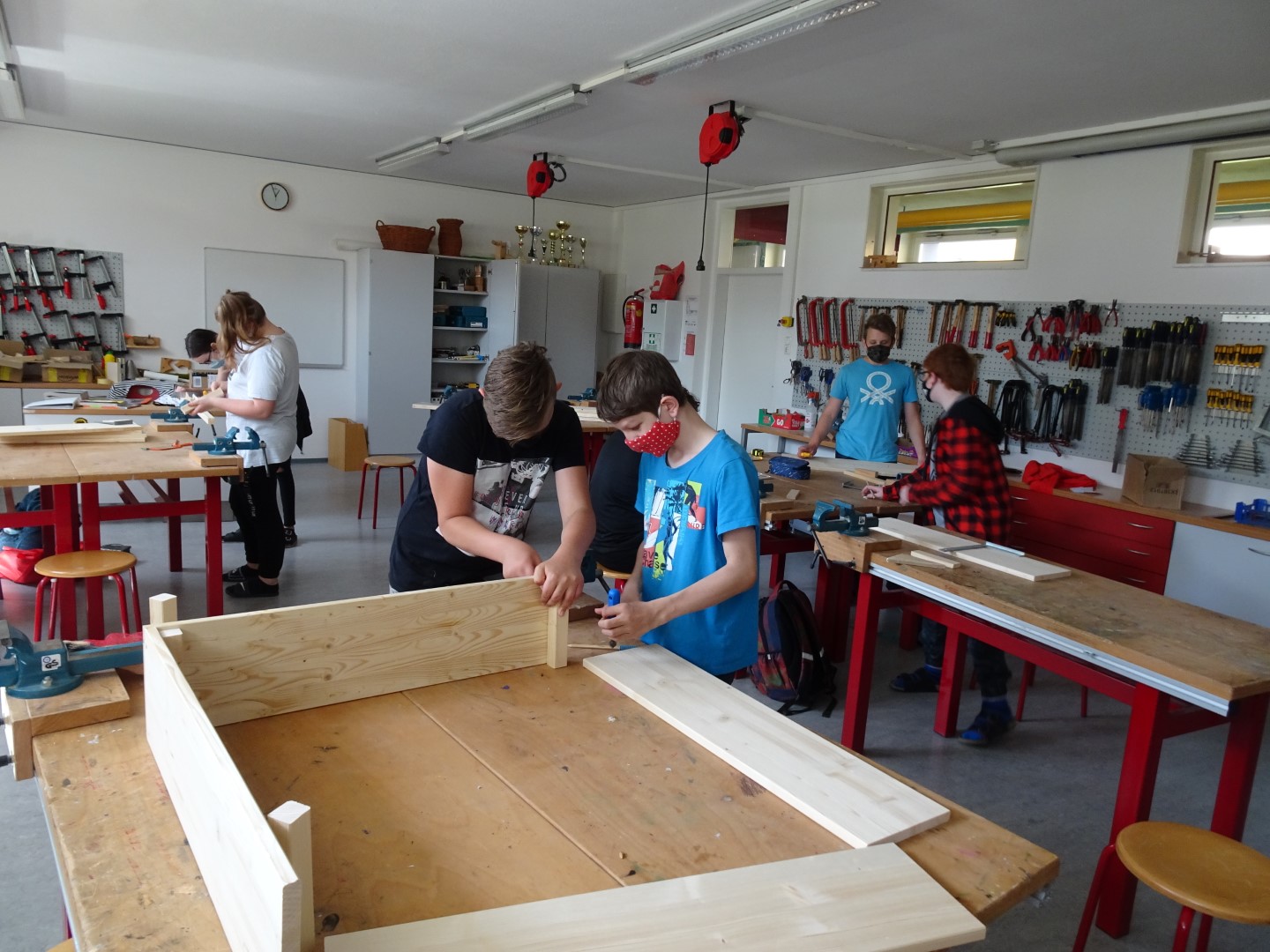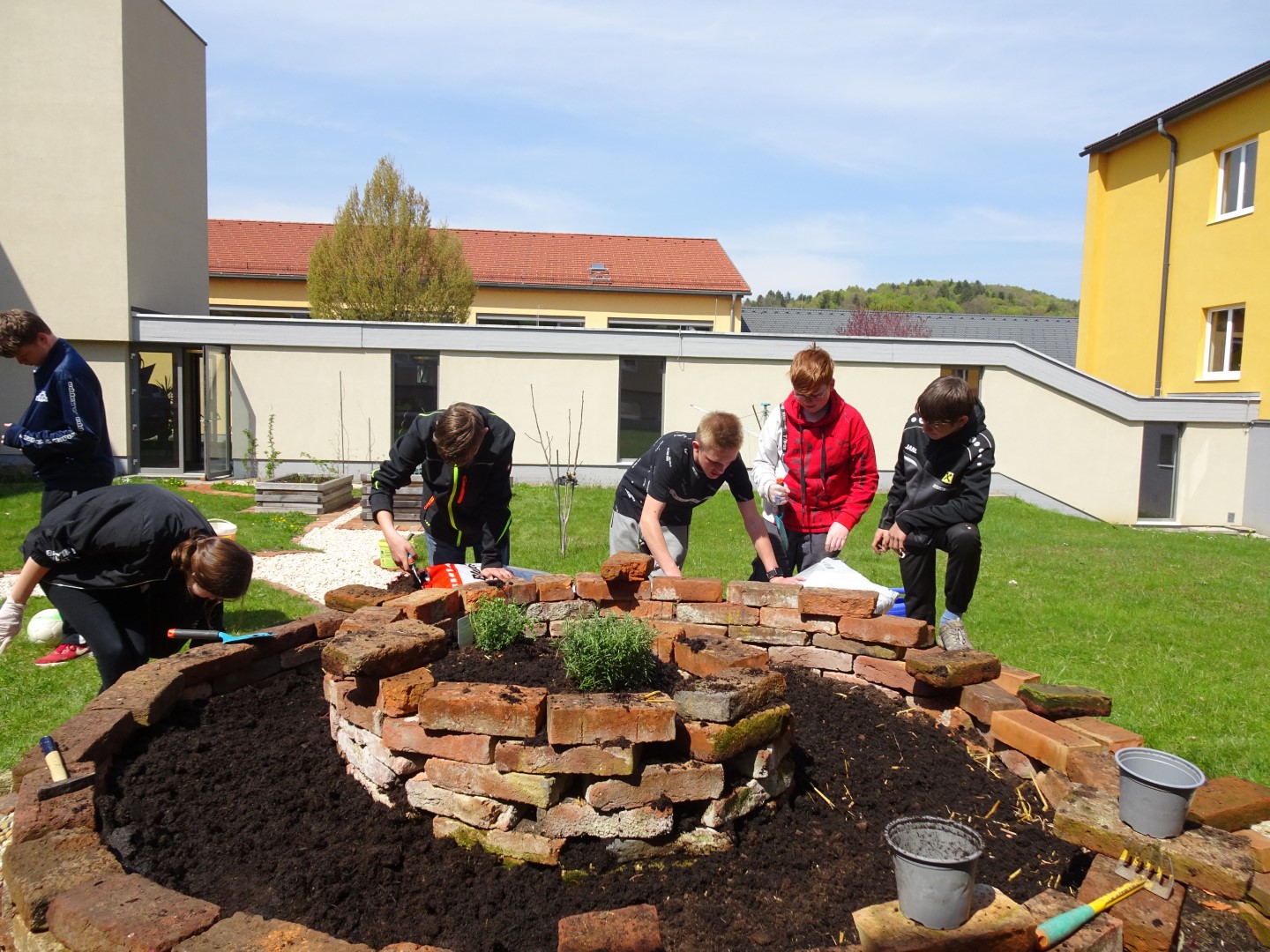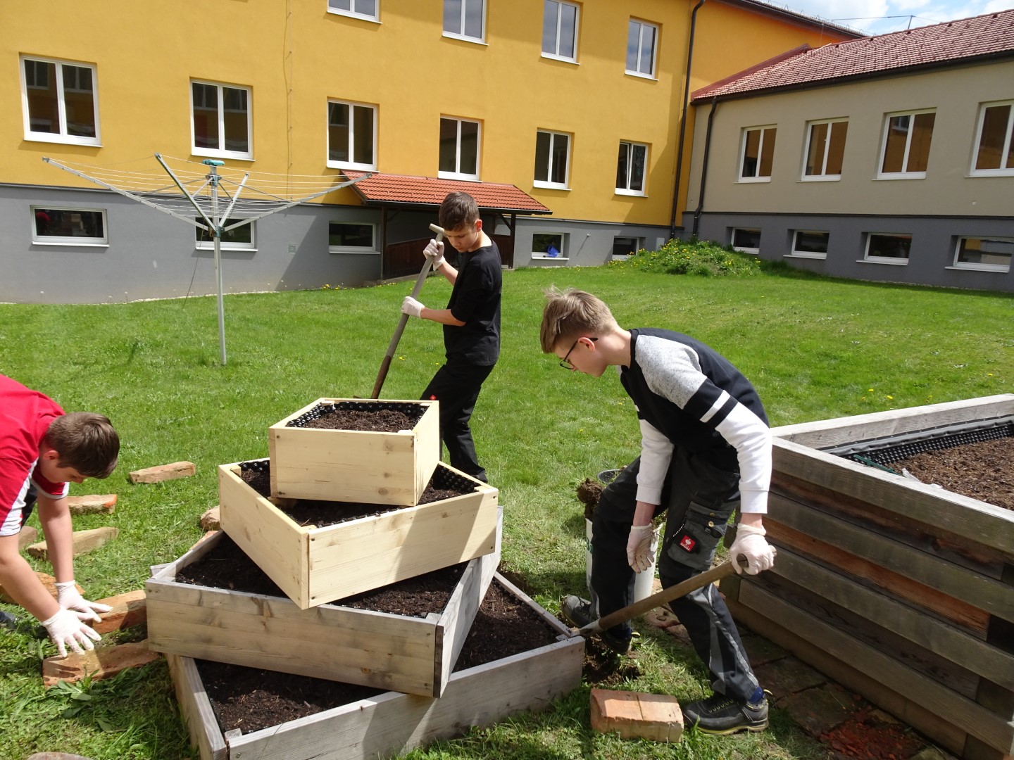 Durch die Pandemie und der Lockdowns wurde der Schulinnenhof stark vernachlässigt. Die Fit Gruppe der 4. Und 3. Klasse startete hier sehr engagiert durch und befüllte beide Hochbeete komplett neu. Das heißt, zur Gänze entleert, ein neues Wühlmausgitter und Vlies montiert und mehrere Schichten – wie es sich gehört – eingefüllt und neu bepflanzt. Ein besonderer HUMUS und ein besonderes AROMA bekommen unsere Pflanzen durch Kakaoschoten der Firma Zotter. Danke an unseren Chocolatier Josef Zotter, der unserer Anfrage um eine Unterstützung in diese Richtung – nicht das erste Mal - gerne nachgekommen ist. Es gab Schüler, die konnten nicht widerstehen und haben sprichwörtlich in Schokolade gebadet. Der Duft war auch wirklich verführerisch. ?