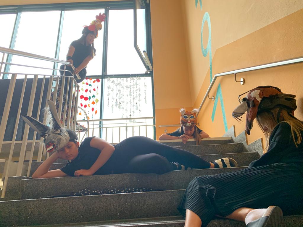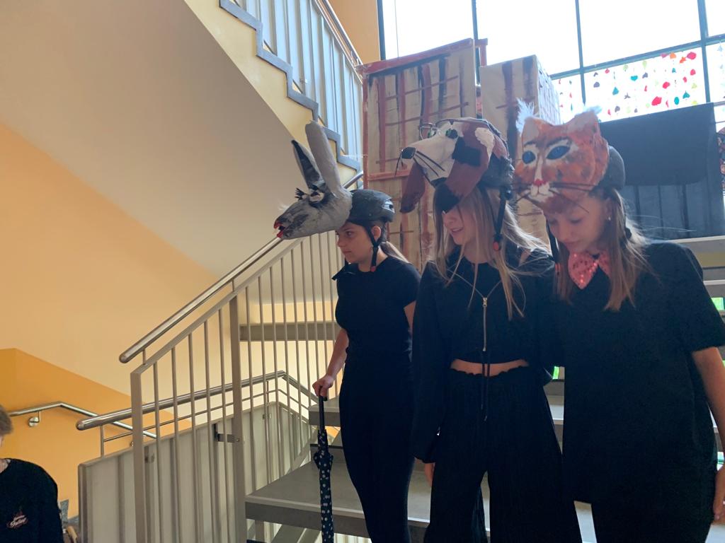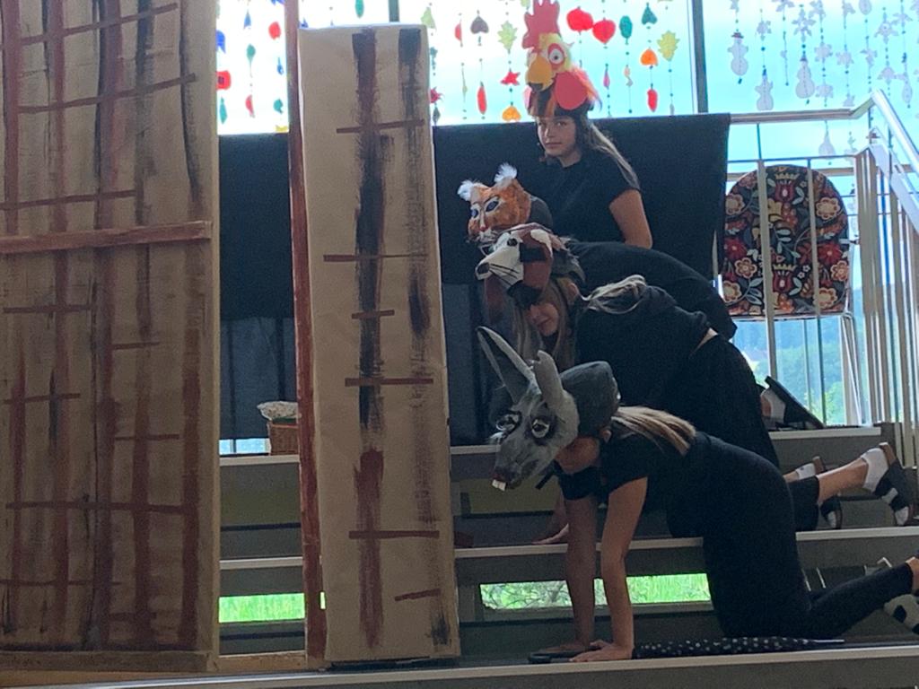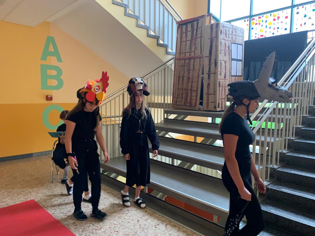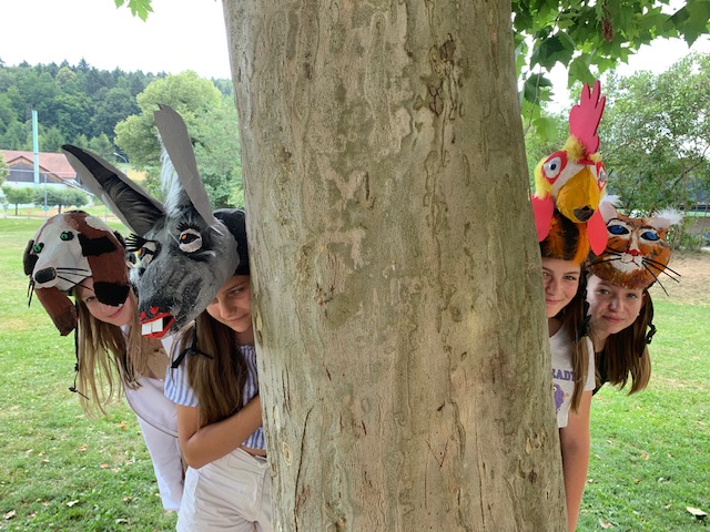 In der letzten Schulwoche überraschten die Schülerinnen der Schwerpunktgruppe Kunst-Kultur-Kreativität die 1. und 2. Klasse Volksschule mit der Vorführung des Theaterstückes "Die Bremer Stadtmusikanten" nach dem bekannten Märchen der Gebrüder Grimm.