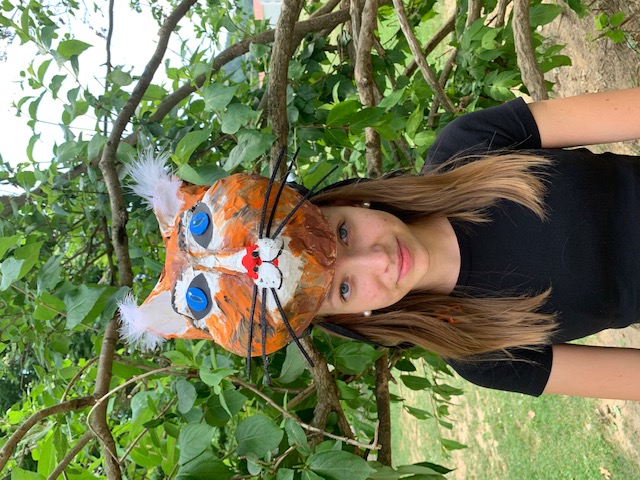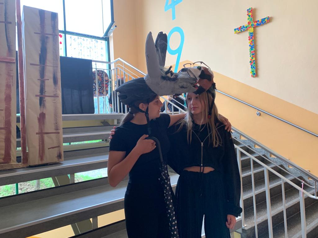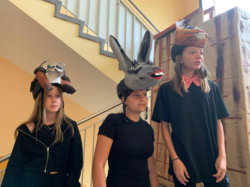 Kreativität bewiesen die Schülerinnen beispielsweise bei der Gestaltung der Tiermasken, die unter dem Aspekt "upcycling", aus alten Fahrradhelmen und Pappmaché  in mühevoller Arbeit gefertigt wurden.