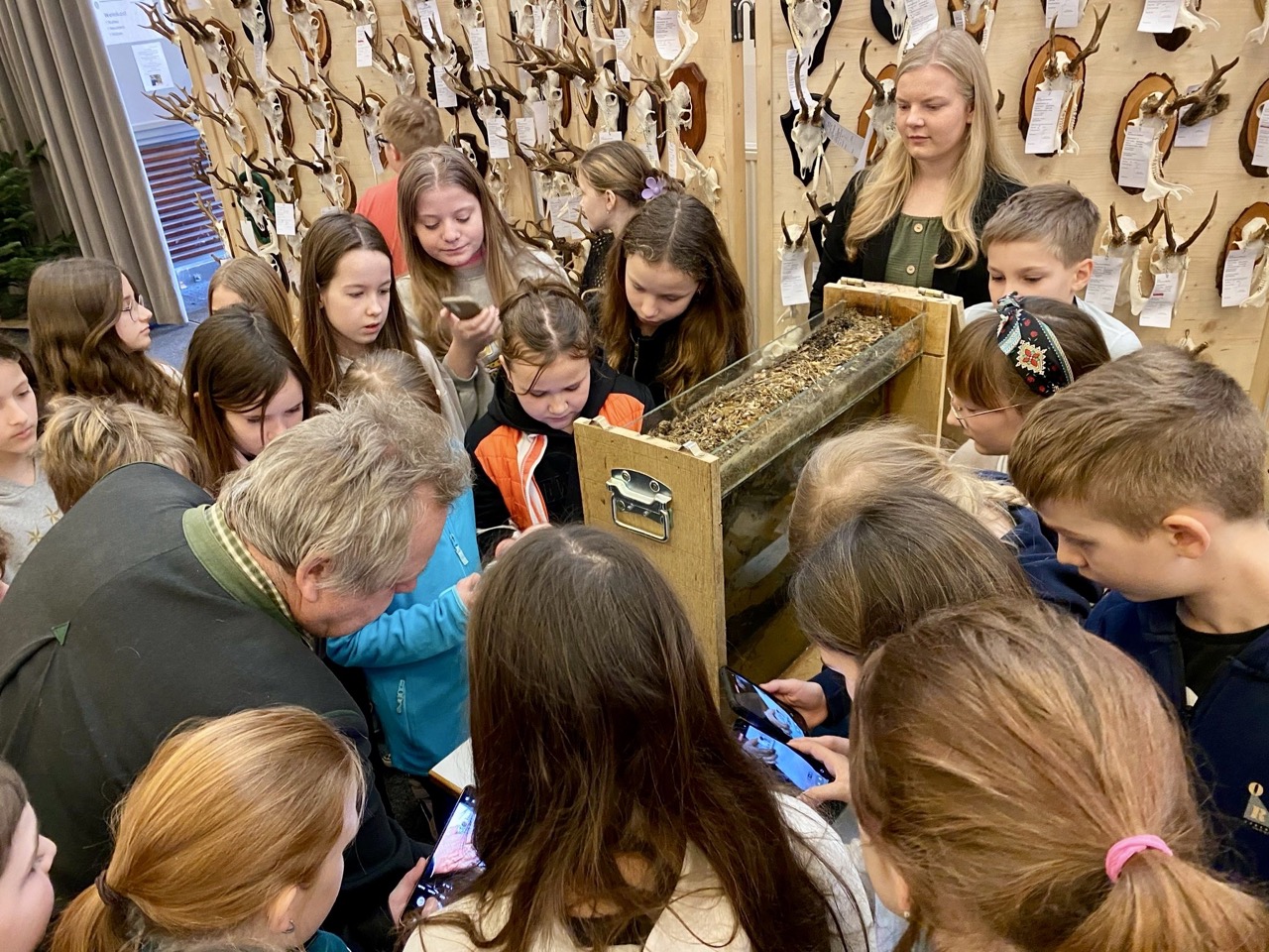 Die Führung beinhaltete das Begutachten von Präparaten heimischer Wildtierarten, einen Waldlehrpfad, Baumkunde, Nist- und Brutplätze, Insekten, Amphibien und vieles mehr.